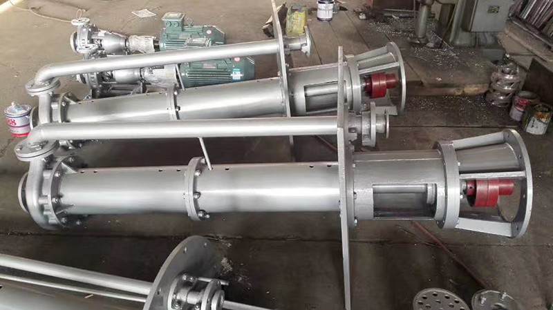 液下化工泵的形式為長軸立式離心泵,與介質(zhì)接觸部分采用鑄鋼或不銹鋼制造,根據(jù)客戶要求液下深度由0.5m-6m不等,工作部分淹沒與液體中,具有使用范圍廣,效率高,無需灌液即能輸送,由于泵運轉(zhuǎn)產(chǎn)生的軸向力及徑向力分別由液上部分的滾動軸承和液下的滑動軸承支撐,因此運行寧靜無噪音,是集環(huán)保節(jié)能的高科技產(chǎn)品。