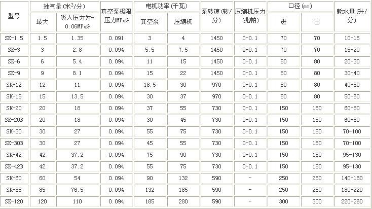 SK系列水環(huán)式真空泵及壓縮機(jī)是用來(lái)抽吸或壓縮空氣和其它無(wú)腐蝕性、不溶于水、不含固體顆粒的氣體,以便在密閉容器中形成真空和壓力,吸入氣體中允許混有少量液體。